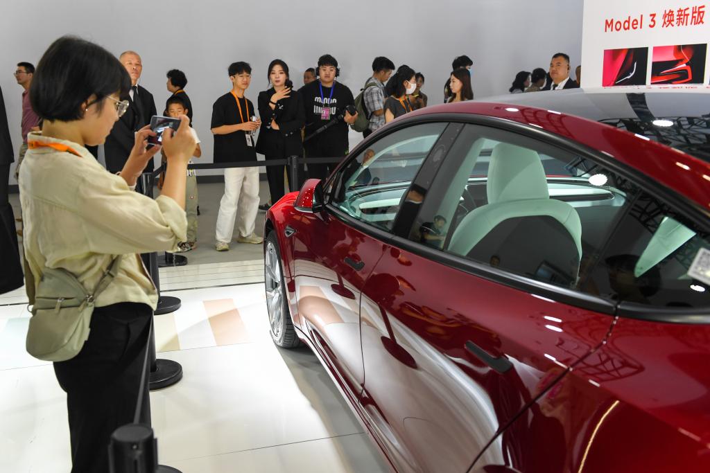 2023年中国国际服务贸易交易会9月2日开幕当天,连续第四年参展的特斯拉携刚刚发布的新款Model 3车型亮相,新车全球首秀吸引不少观展嘉宾试乘体验。