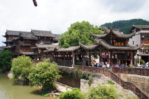 古码头的小桥流水旁,轻轻响起的古筝旋律,余音袅袅,一袭霓裳羽衣偏偏起舞,瞬间把曲凹哩游玩的古风氛围感推至高潮,吸引不少汉服爱好者、流量达人前往打卡。