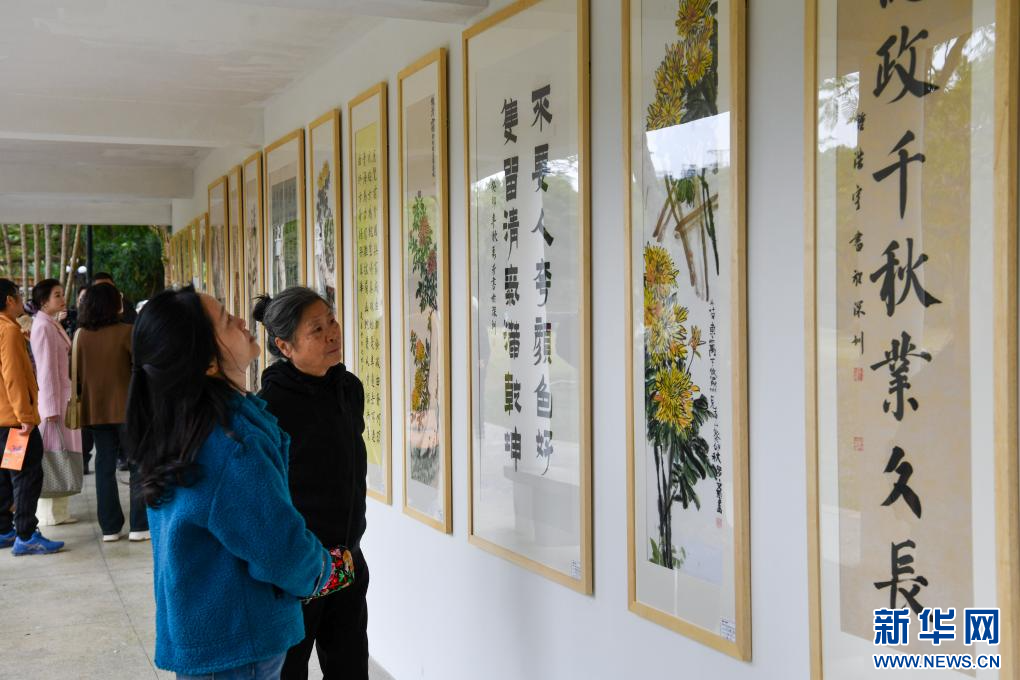 12月19日,群众在深圳东湖公园主会场观看“菊韵廉心”书画展。