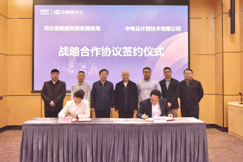 河北省数据和政务服务局党组成员、副局长张燕与中国电子云副总裁周永会代表双方签署战略合作协议。