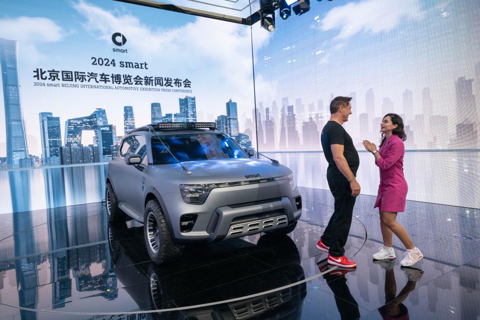 4月25日,在北京中国国际展览中心顺义馆举行的2024北京车展上,全新smart精灵#5概念车亮相。