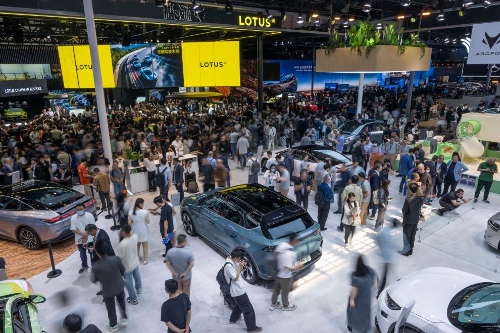 4月25日,在北京中国国际展览中心顺义馆举行的2024北京车展上,人们在车展现场参观。