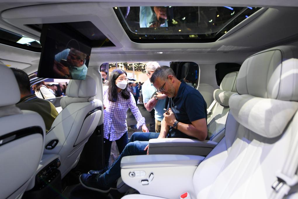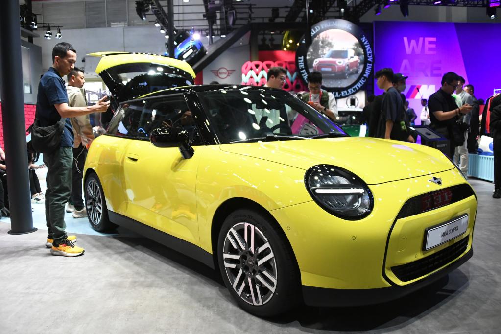 4月25日,在北京中国国际展览中心顺义馆举行的2024北京车展上,参观者观看极氪汽车发布的新款极氪MIX车型。