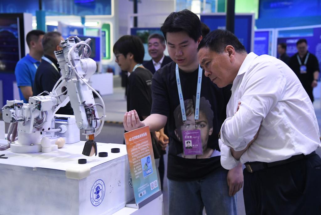 在磁控4D打印平台展台,十字形软体材料能够在磁场作用下,包裹并搬运鸡蛋模型。据北京交通大学Rheobot实验室负责人李振坤介绍,这项技术也有望应用于医疗领域。