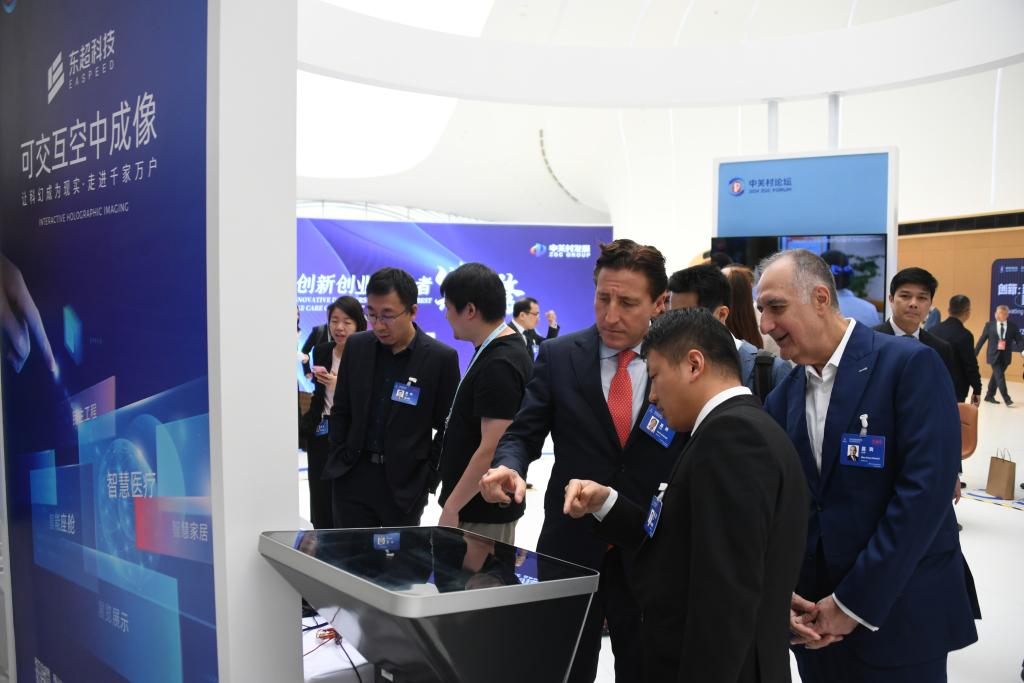 新华社北京4月28日电 运用脑机接口技术,用“意念”给机械臂传递信号、操控物体;在不触摸实物的前提下,“把玩”空气中的“文物”;无人驾驶的公交车自主避障、穿梭、停车……正在北京举办的中关村论坛上,参展商秀出新技术、新应用、新服务,让观众体验硬科技、品味生活气息、感受国际范。