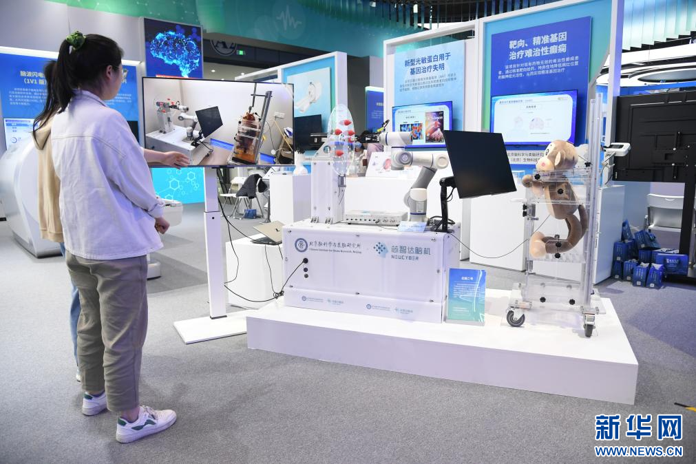 这是2024年4月27日在中关村展示中心常设展中拍摄的“北脑二号”脑机接口。新华社记者 任超 摄