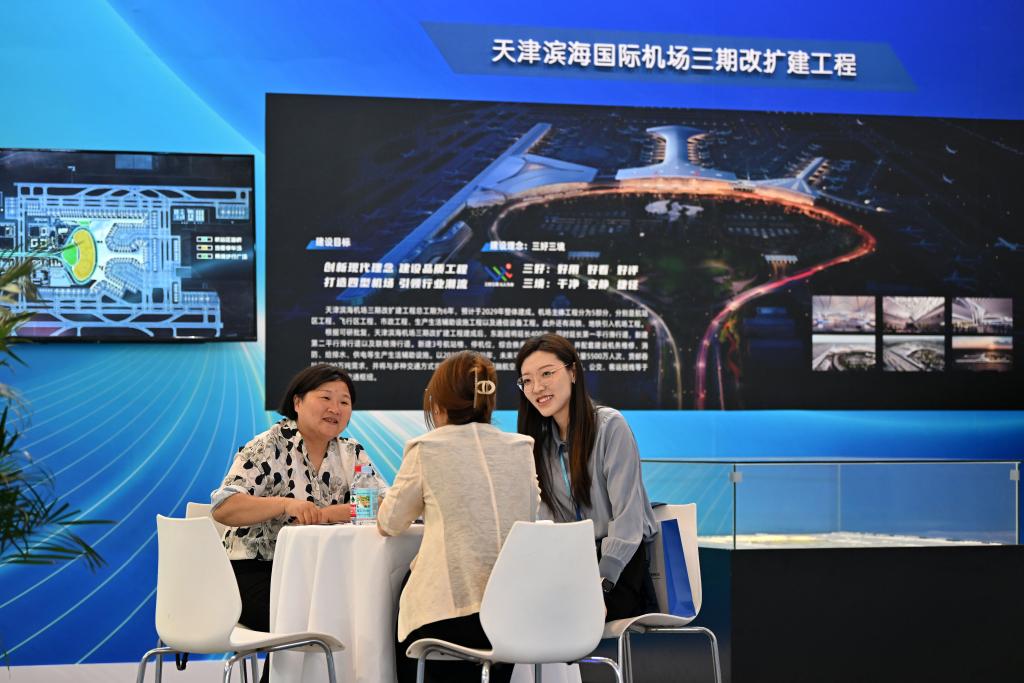 5月22日,在国家会展中心(天津),与会嘉宾在创新成果展上交流。