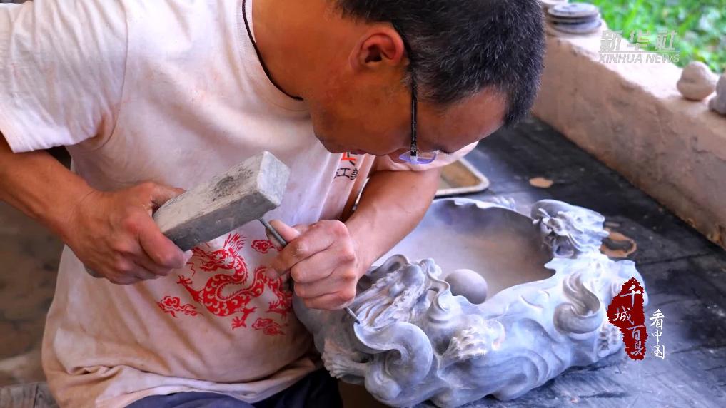 走进山东省潍坊市临朐县一家紫金石雕刻工坊,一件件精美的紫金石摆件错落有致地摆放在展示架上。雕刻技艺传承人正全神贯注地沉浸在创作之中。紫金石的雕刻过程较为复杂,工序繁多。经过采石、选料、设计、雕刻、打磨、上蜡等多道工序,一方原石被雕刻成形态各异的紫金砚及紫金石摆件,其造型精巧别致,雕工细腻,令人叹为观止。