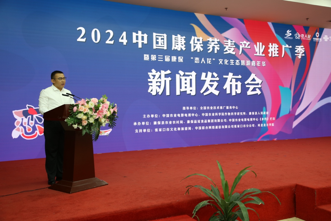 这么近,那么美,周末到河北。7月23日, 2024中国康保荞麦产业推广季暨第三届康保“恋人花”文化生态旅游嘉年华新闻发布会在北京中国农业电影电视中心举行。本活动由中国农业电影电视中心、中国农业科学院作物科学研究所、康保县人民政府联合主办,中国农业电影电视中心《乡约》栏目、康保县农业农村局、康保品冠食品集团有限公司共同承办。中国农业电影电视中心副主任欧阳海洪,中国农业科学院作物科学研究所副研究员何毓琦,康保县委副书记、政府县长周学勤,康保县政协主席胡启荣,康保县政府副县长李国栋,品冠集团有限公司董事长张佃成等出席发布会。