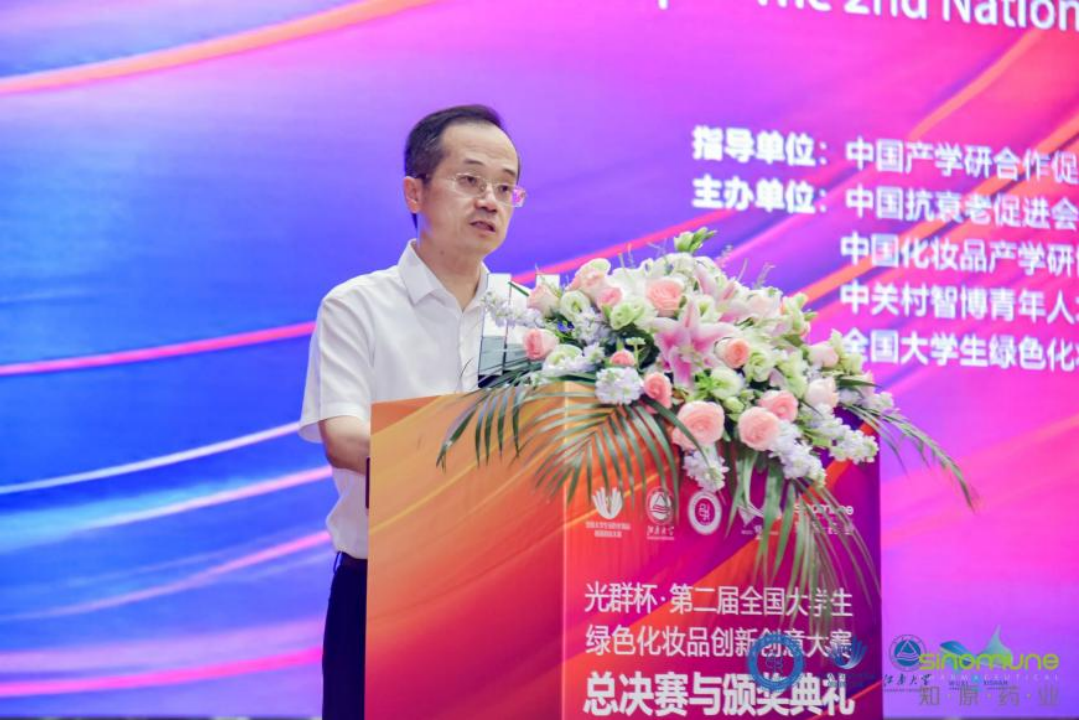 7月27日下午,大赛的颁奖典礼正式举行。中国科学院院士、广州华商学院校长陈新滋,国际欧亚科学院院士凌沛学视频致辞。锡山区委常委、锡山经济术开发区党工委副书记、管委会副主任钱斌,中国产学研合作促进会党委副书记丁玉贤,中国化妆品产学研协同创新平台理事长徐晓东,江南大学党委常委、副校长倪松涛现场致辞。