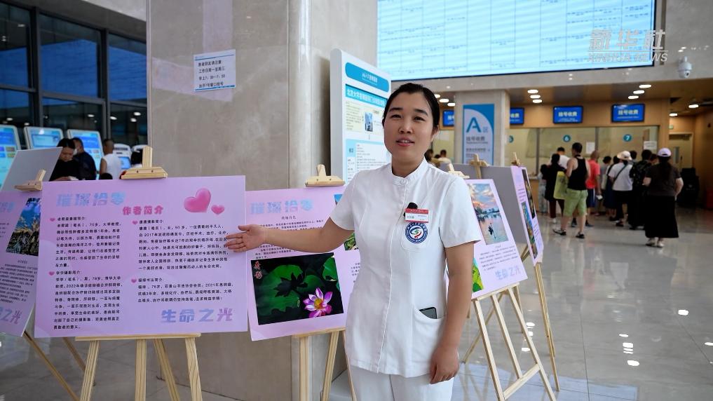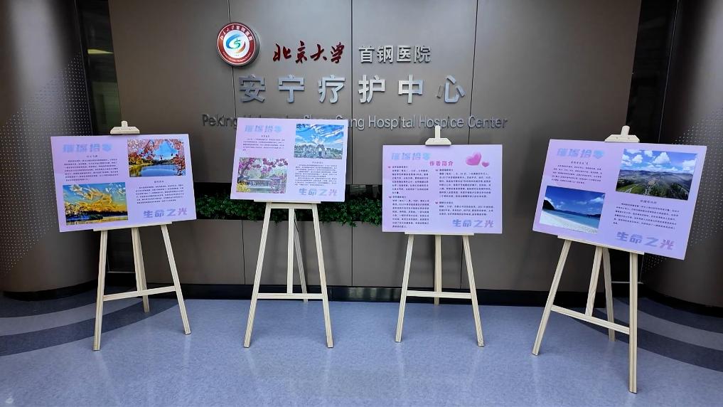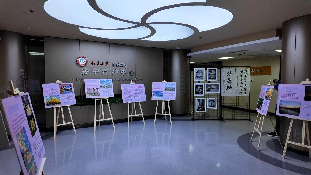“璀璨拾零·生命之光”书画、摄影作品展正在北京大学首钢医院举办。这些作品源于四位肿瘤终末期患者,他们长期不懈地与病魔作斗争并坚持热爱生活。