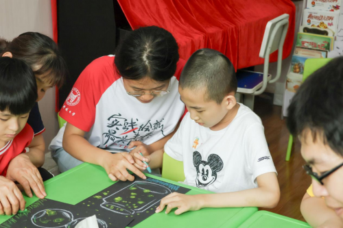 实践期间,队员们作为助教参与北京市门头沟区永爱康复训练中心、北京市顺义区继民启智康复中心等机构的日常教学活动,在观察孤独症儿童搭积木、绘画等活动的同时,亦为孩子营造了一个包容友爱的小型社会环境。