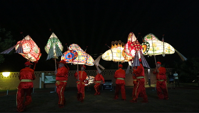 尤其是无为鱼灯的登场亮相,营造出无为这个长江之滨的传统鱼米之乡的幸福感。每年秋分之时,正值无为渔业丰收。为庆贺渔业丰收,人们把鱼的造型与灯彩艺术结合起来,形成鱼灯习俗并入选第三批国家级非物质文化遗产。鱼灯表演时,由八位身强力壮着蓝绿色调绸布衫青年,手持八盏两米多长的鱼灯,依次表演“鲤鱼跳龙门”“摆阵保安泰”“逗跃情戏水”“欢舞盛世代”四个部分,含游场、比翅、打抖、擂沙等33种表演动作,配有击打类乐器和唢呐,配以鞭炮的炸响。