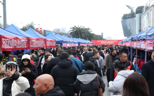 为进一步推动重点产业、重点企业的蓬勃发展,助力企业广纳贤才,同时促进农民工、新就业劳动群体及待业人员的充分就业与自主创业,2月8日,成都市双流区人民政府九江街道办事处在海滨城购物中心1号门外举办了“春分启航播种希望 携手共创职场辉煌”2025年九江街道招聘会。