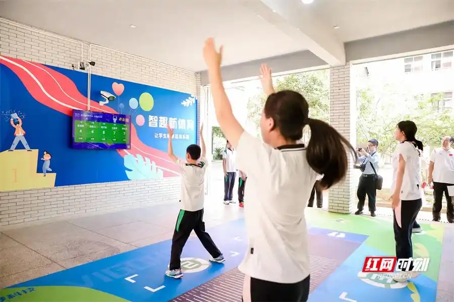 长沙市雨花区砂子塘小学“智慧操场”融入体育教学与课间活动。