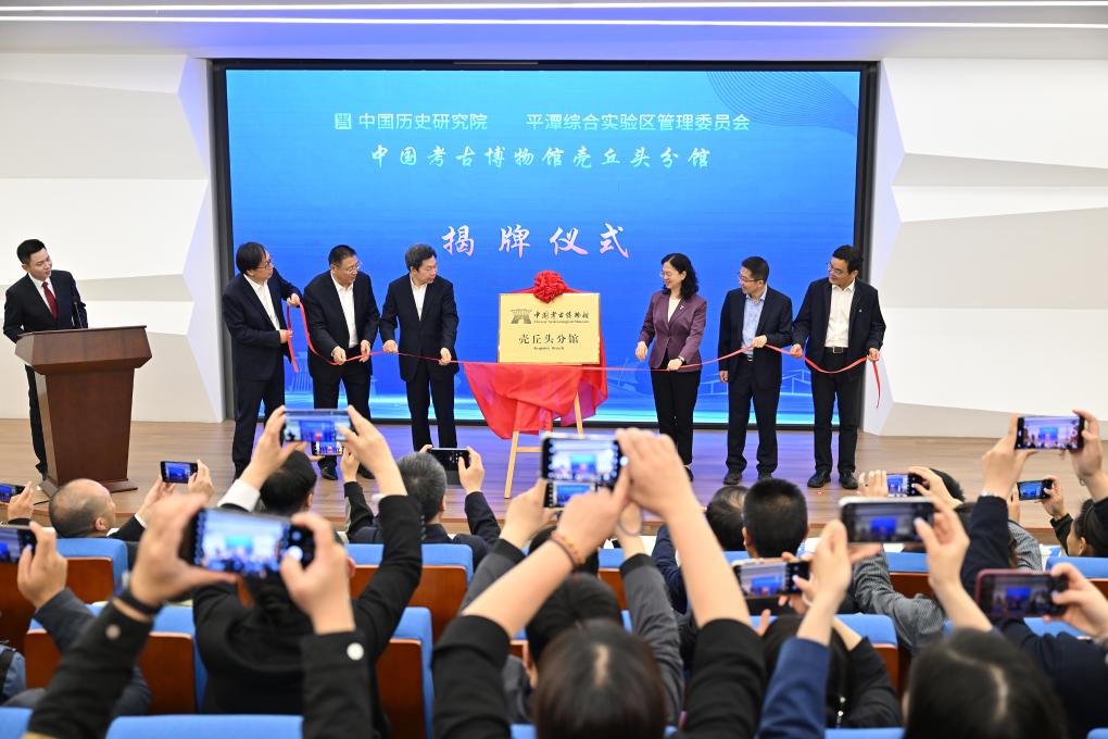 4月9日,嘉宾共同为中国考古博物馆壳丘头分馆揭牌。