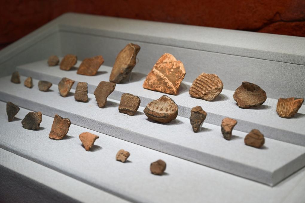 这是中国考古博物馆壳丘头分馆的展品陈列(4月8日摄)。