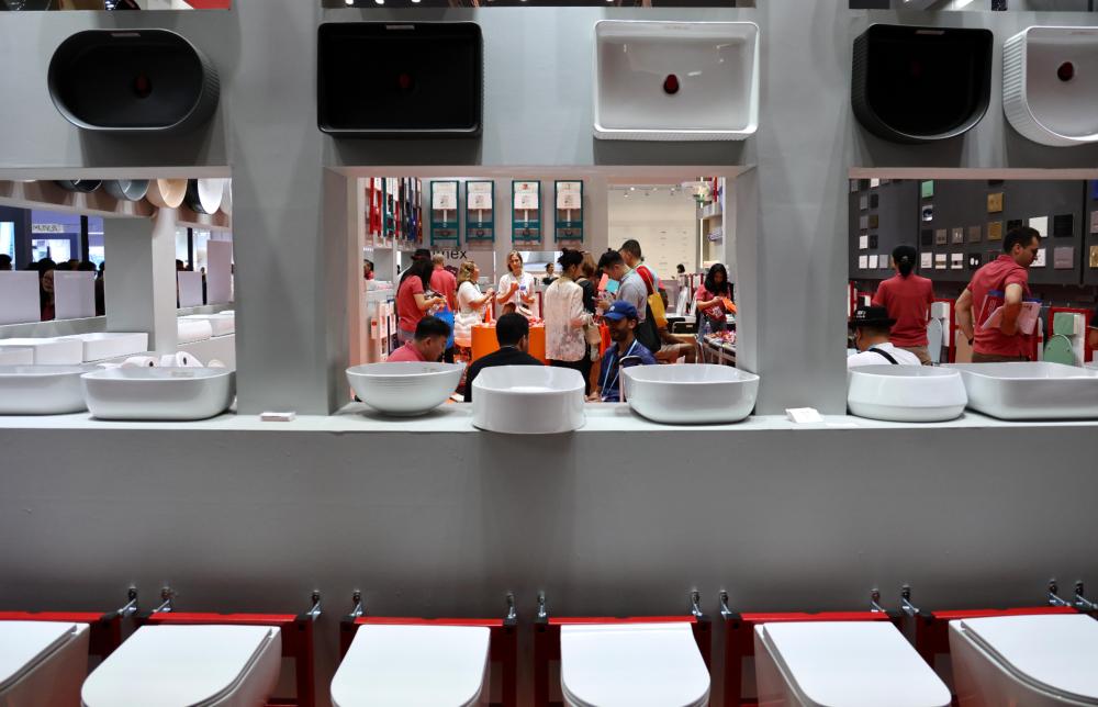 4月23日,客商在第137届广交会上选购卫浴产品。