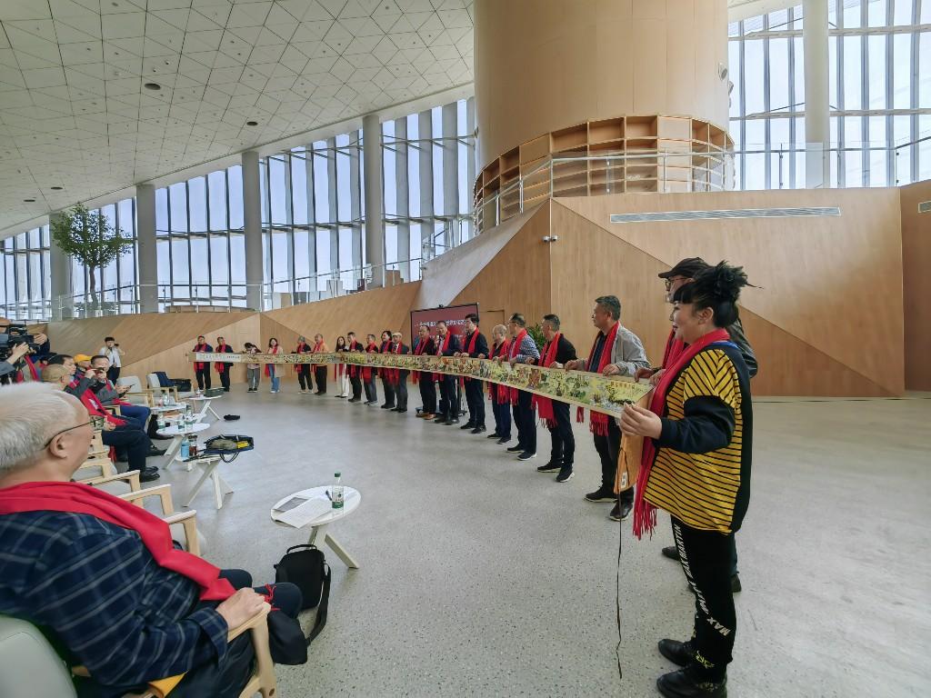 苏州世界语协会副会长朱利荣向西安图书馆赠送丝路长卷