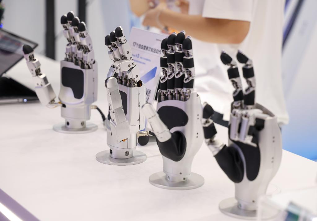 这是在兆威机电展台展出的灵巧手(4月24日摄)。