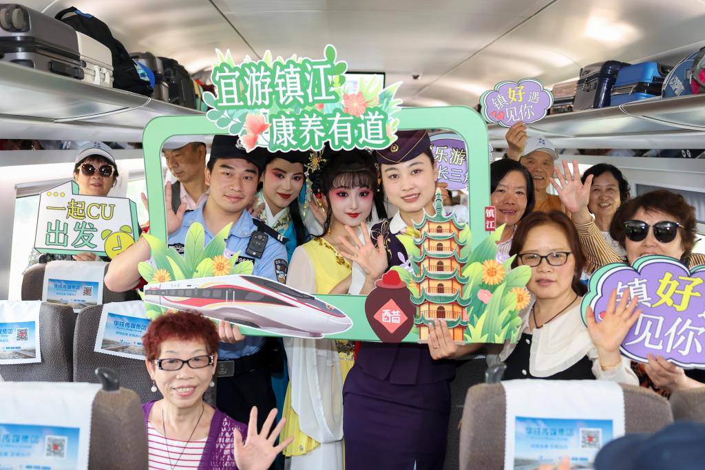 当日是第15个“中国旅游日”,近百名银发游客乘坐G7236次列车,从上海火车站出发前往镇江,开启为期3天的宜游镇江康养之旅。