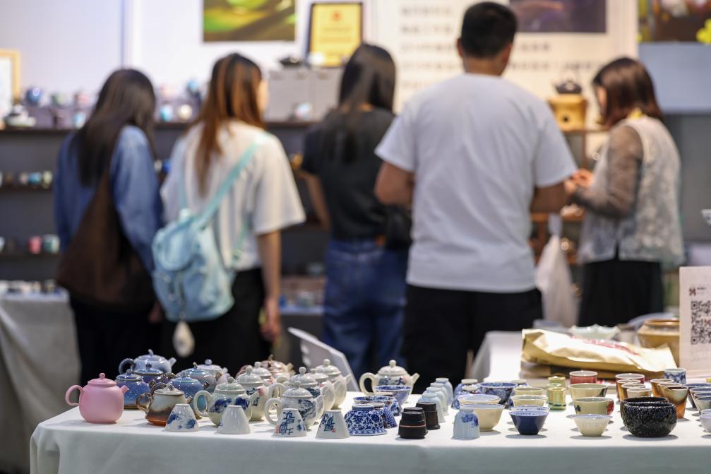 5月21日,观众在第七届中国国际茶叶博览会现场挑选茶器。