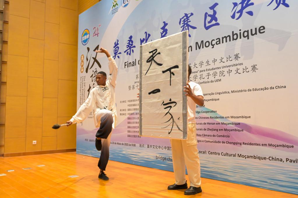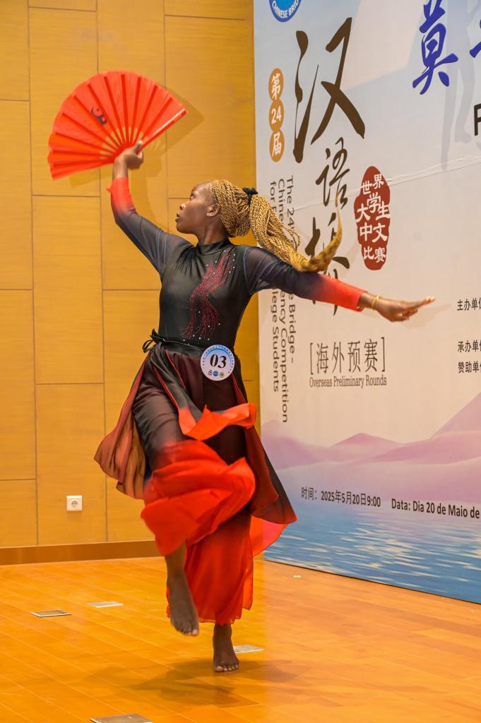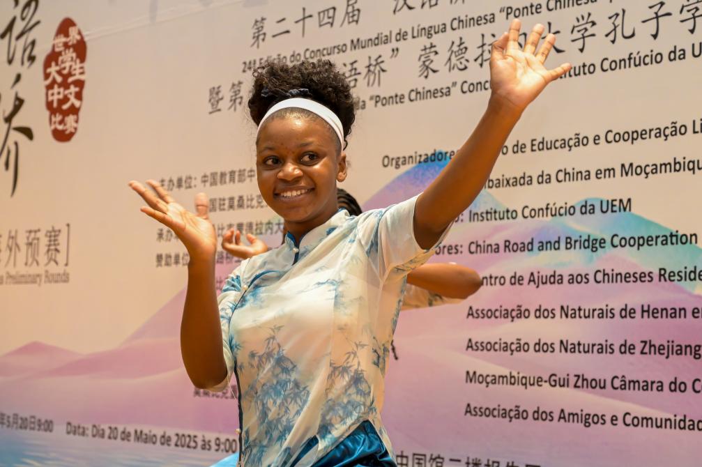 5月20日,在莫桑比克马普托,参赛者在第24届“汉语桥”世界大学生中文比赛莫桑比克赛区决赛上表演才艺。