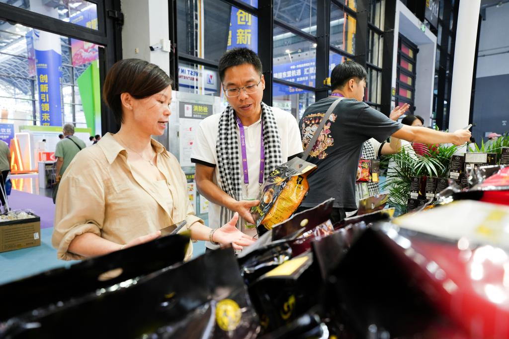 9月17日,在广西南宁国际会展中心,人们在选购参展商品。