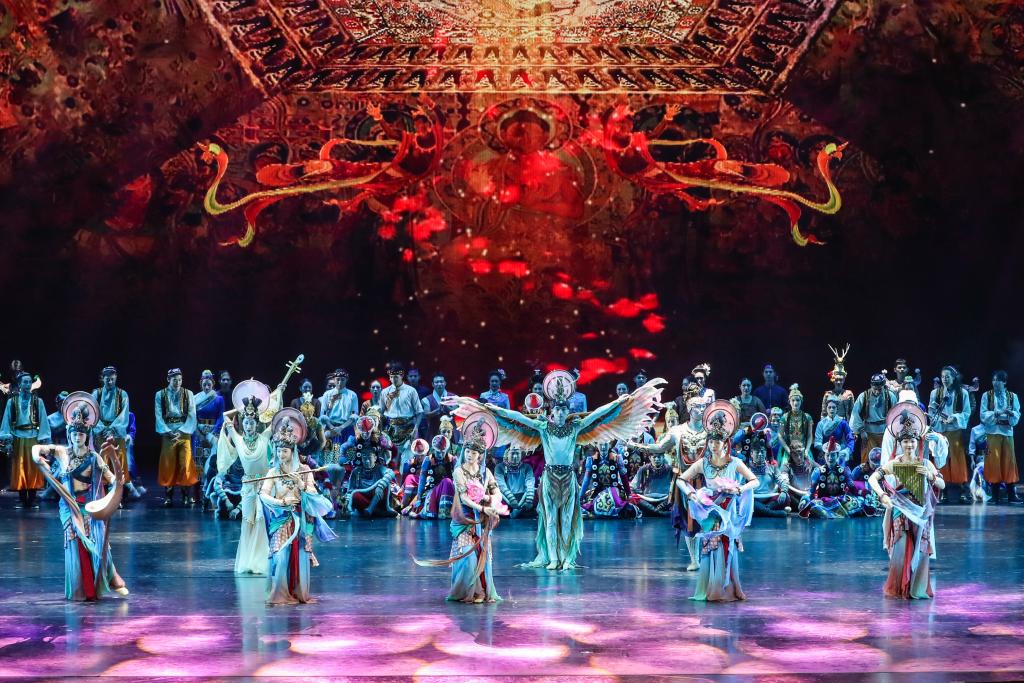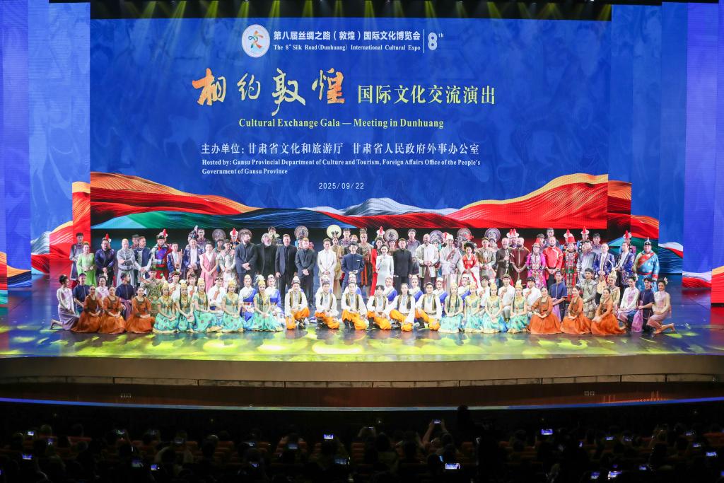 9月22日晚,“相约敦煌”国际文化交流演出活动在甘肃省敦煌市上演。来自美国、泰国、匈牙利、韩国等国及甘肃省内艺术院团的演员齐聚敦煌大剧院,以歌舞为媒,增进文化交流互鉴。该活动是历届敦煌文博会的保留项目之一。