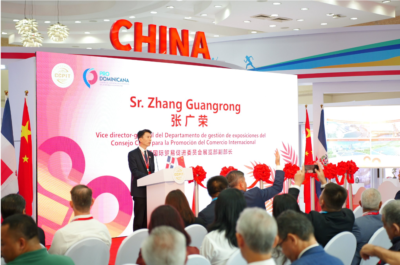 由中国贸促会主办的2025年多米尼加中华人民共和国贸易展览会于10月10日在圣多明各开幕。中国驻多米尼加大使馆临时代办周育琦、中国贸促会展览部副部长张广荣、多米尼加外交部国际合作司司长卡洛斯·埃尔南德斯、多米尼加出口投资促进中心部门副主任弗拉基米尔·皮门特尔出席开幕式并致辞。多米尼加工商业暨中小企业部监督商业活动监营司司长罗穆洛·安曼努尔·瓦也霍,劳动部劳动司司长瓦伦丁·埃雷拉,多米尼加中国商会创始人罗伯托·桑塔纳,多米尼加中华总商会会长张跃辉,多米尼加前驻华代表吴玫瑰,多米尼加中国商会会长安娜·莫伦等各界友好人士近百人参加此活动。