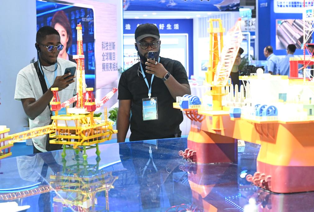 10月16日,与会人员在中国海洋装备博览会现场参观拍摄。
