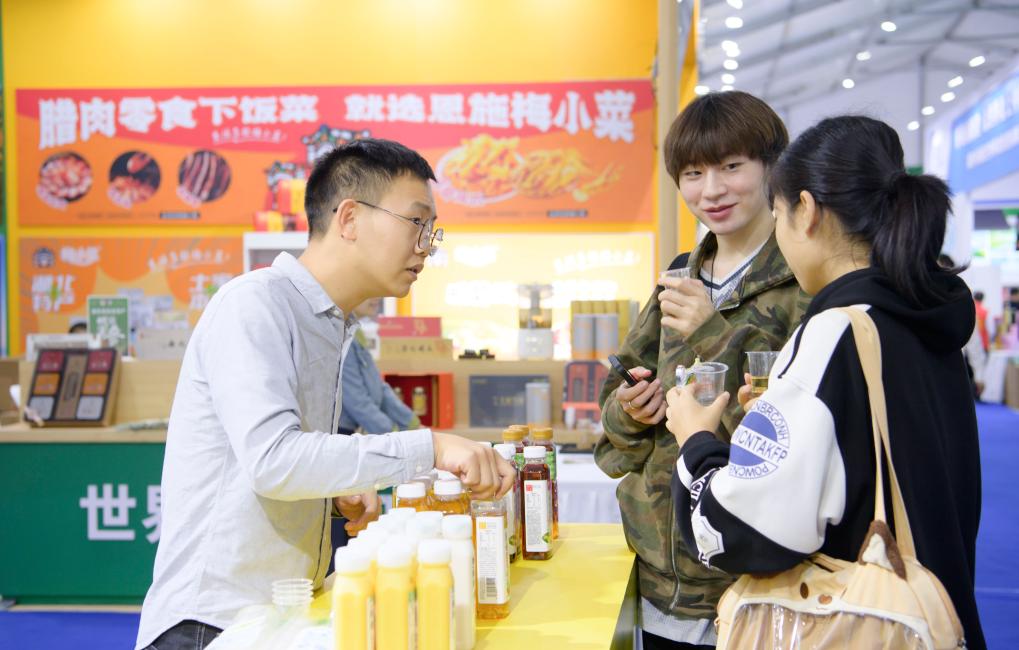 10月18日,工作人员在“硒博会”上推介富硒产品。