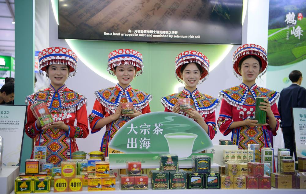 10月18日,工作人员在“硒博会”上展示恩施硒茶的手工制作技艺。