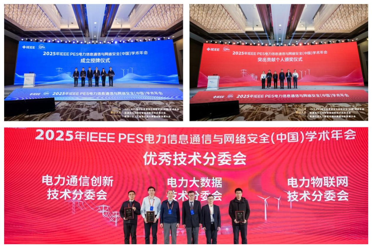 会议见证了 IEEE PES电力系统通信与网络安全技术委员会(中国)正式成立了电力低空经济技术分委会、电力通信开源技术分委会、电碳算协同技术分委会、电力具身机器人技术分委会、电力空天信息技术分委会五个新分委会;同时,电力通信创新技术分委会、电力物联网技术分委会、电力大数据技术分委会获评2025年度优秀技术分委会荣誉,张书林、夏元轶、余翔三位成员荣获2025年度突出贡献个人荣誉。