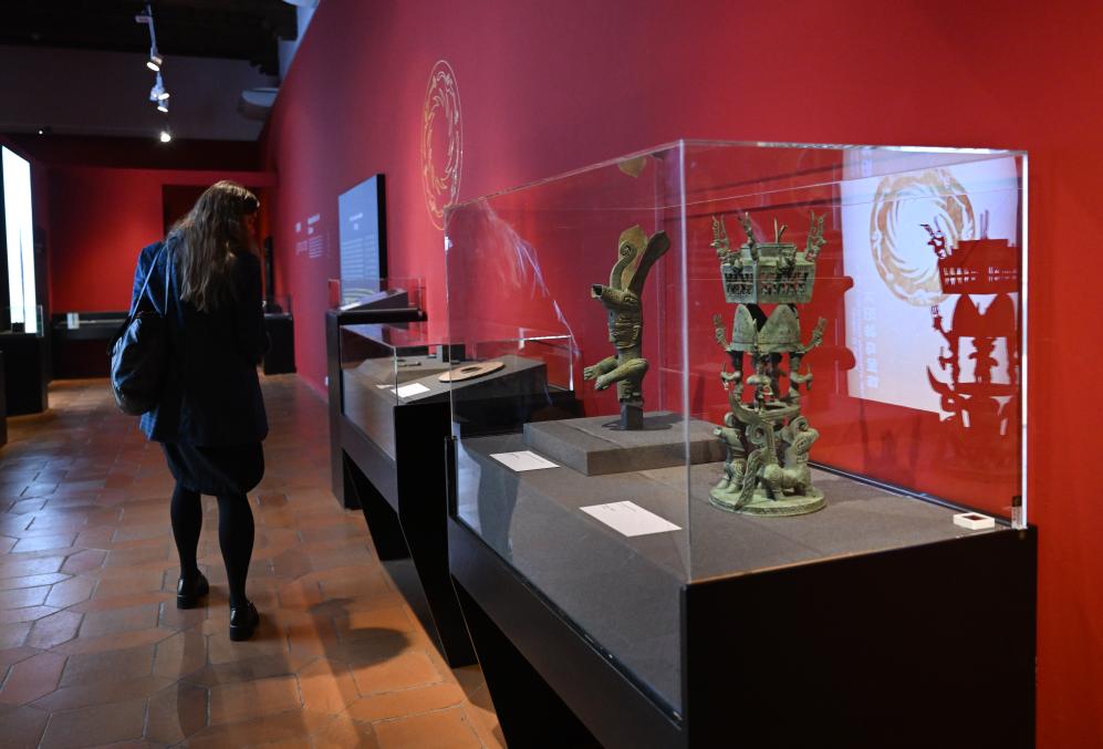 3月17日,在西班牙瓜达拉哈拉博物馆,一名女子参观中国西南地区青铜文明展。