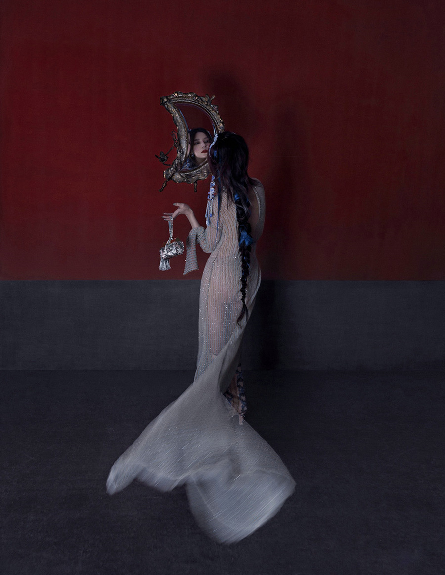 赵薇四月刊封面大片释出,八次登封的赵薇此次化身古堡美人,独特的蓝黑色编发,搭配极具欧洲古典美学的夸张耳饰,在静谧空间中舒展悠然自在的姿态。封面的三套礼服各有特点,将赵薇的冷艳疏离气质淋漓展现。