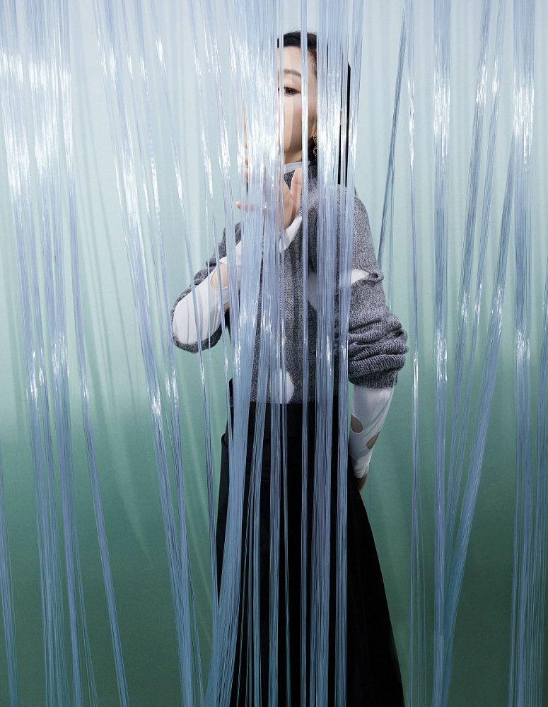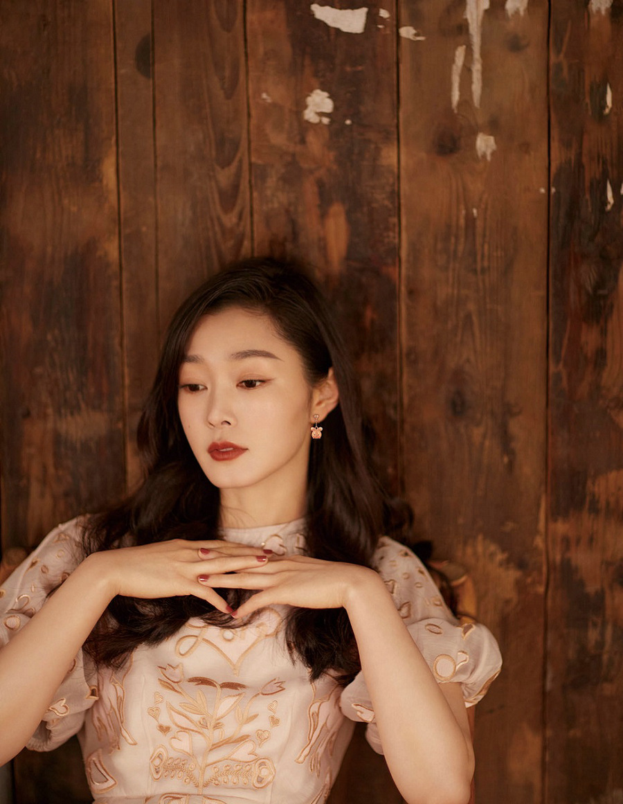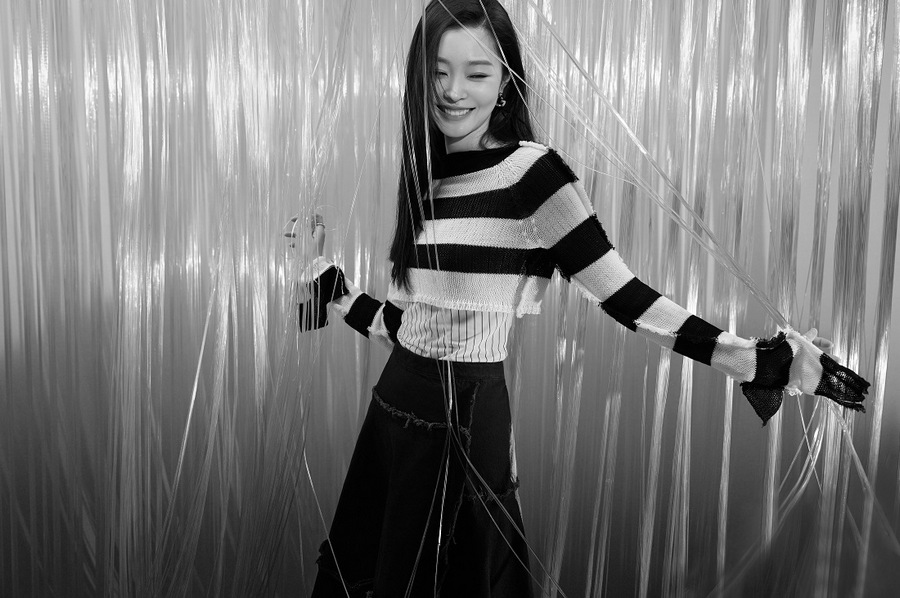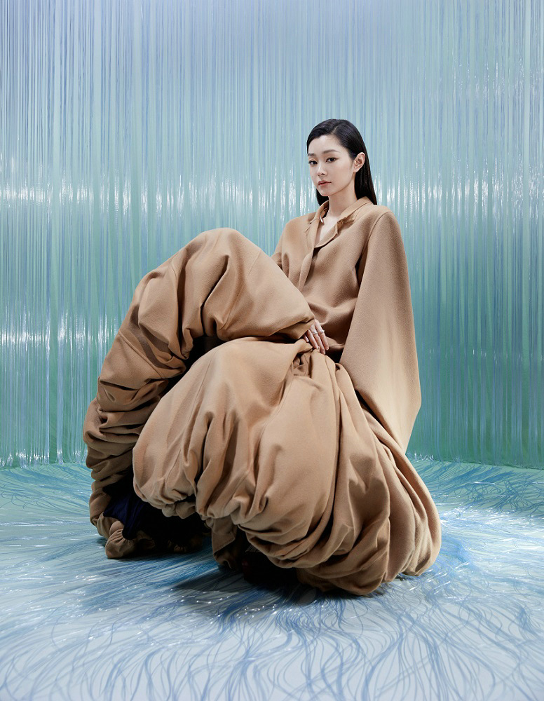 在第二本杂志大片中,宋轶则以干净利落的长发搭配连衣裙、黑白条纹上衣等,举手投足间展现优雅气质。帘幕之下,宋轶时而忧郁内敛,时而绽放笑容,长发飘散,姿态优雅,呈现出敏锐的镜头感与强大的情绪表现力。