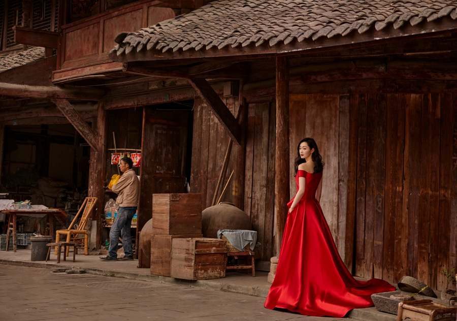 在5月号封面大片中,宋轶来到成都古镇,在充满故事感的茶馆中演绎一则绕有韵味的小镇故事。身穿红色上衣搭配同色阔腿裤的宋轶,置身于古朴的老茶馆,安静品茶,仔细思索,展现出演员观察生活的盎然兴致。