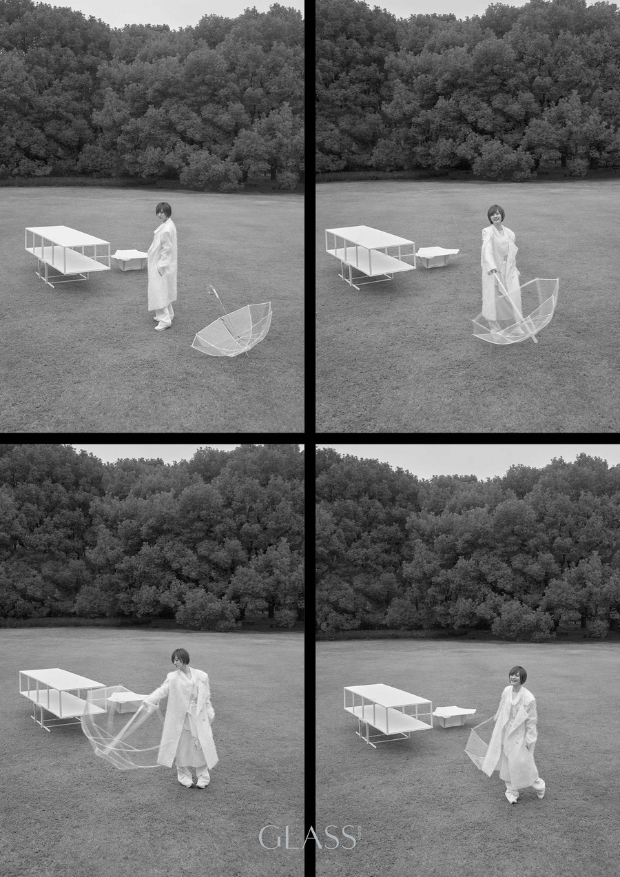 当换上一席白衣,举着伞尽情跳跃的她又和草地上的装置遥相呼应。与自然融合,感受万物本真的规律,又不失她独有的灵动与鬼马。静听天地间,纵享生活里,这正是孙俪一直以来在工作和家庭中最朴实宝贵的准则。一场雨、一棵树、一片林……都能让她从微小之处发现愉悦和趣味。尽管如她所说,她的能量沸点不高,但她已然拥有在生活中汲取一切能量的特别能力,对工作、生活总是漾着一股活力。这股能量和她下半年即将播出的《理想之城》中饰演的苏筱不谋而合,作为造价师的苏筱,在造价工作上秉持着严谨与秩序,在生活里也如夏花一般,不惧疾风骤雨,享受每一个飞驰的瞬间。