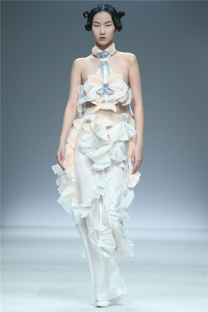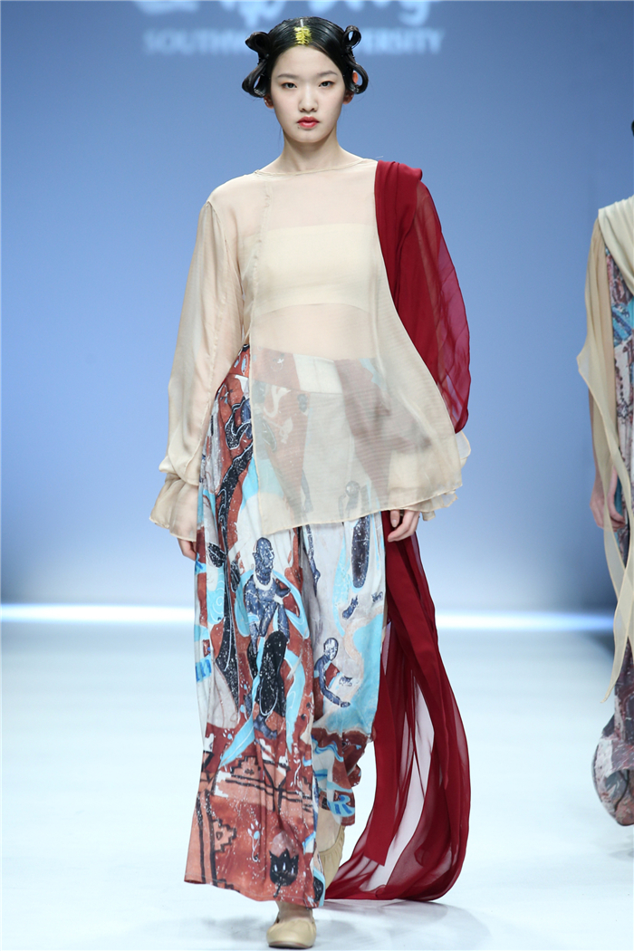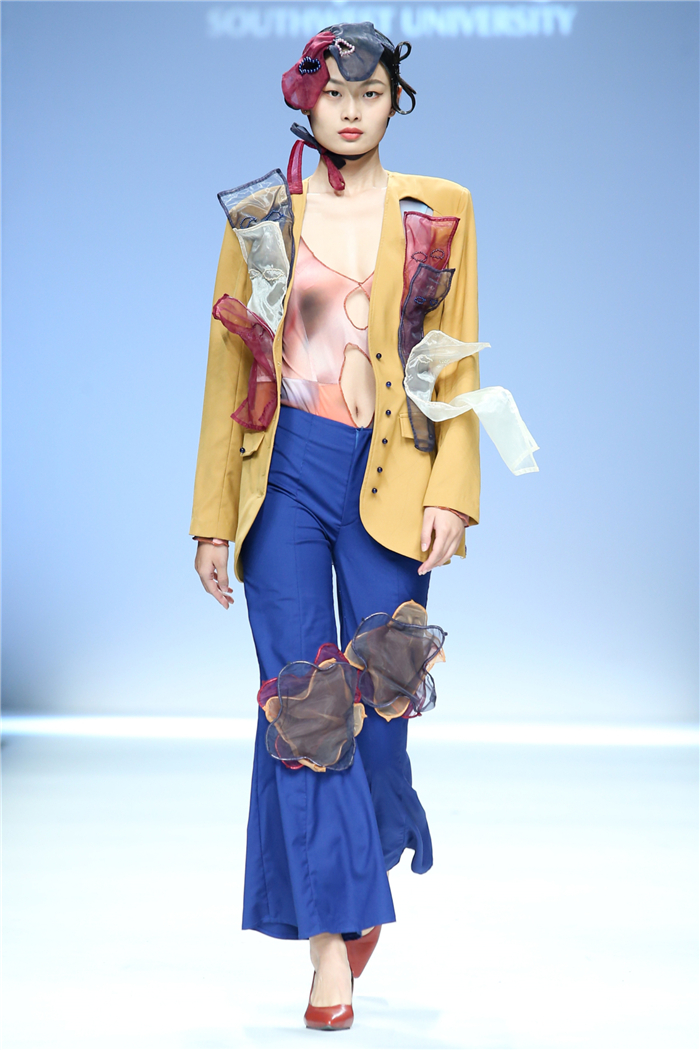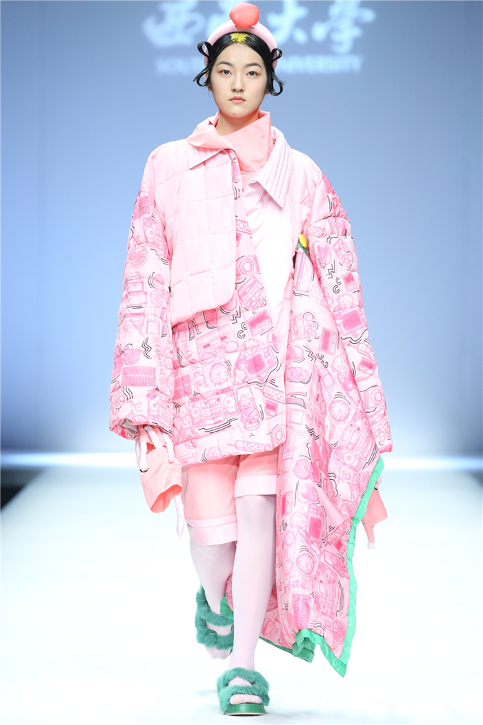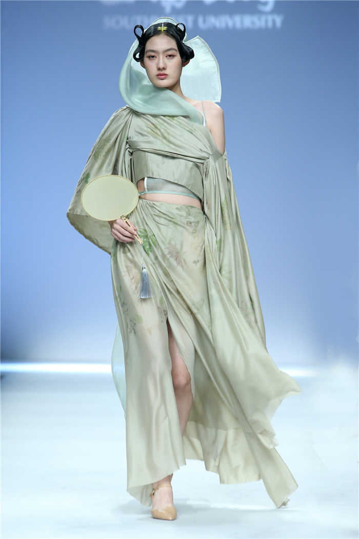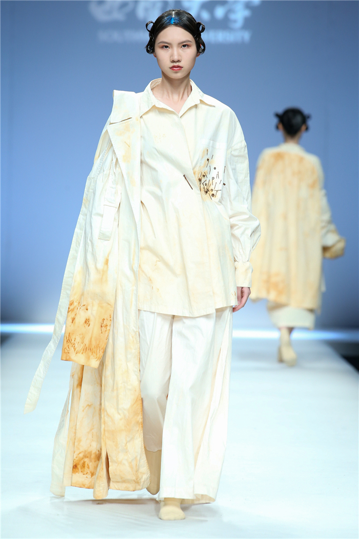 伐檀有人,莫及舟车;蚕桑未采,何来垂裳。对一个民族而言,服装不仅是一丝一缕的交织技艺,更是“求真尚美,砺志笃行”的坚守。百余年来,西南大学杏坛育人,劝课农桑,积淀了深厚的人文底蕴。西南大学蚕秉持“生生不息、经天纬地”的学院精神,励精图治,改革创新。本“茧,蚕衣也。衣者,依也。蚕不自其衣,而以其衣衣天下,此圣人之所取法也。”西南大学以“繭/Cocoon”为主题,基于服装的规范性,在多元化的创作构想、材料应用、色彩组合、科技融合中具有了超越性。由跨学科、跨文化、跨界延伸了“跨时尚”的概念,代表着西南大学蚕桑纺织与生物质科学学院,立足西南,心系天下。