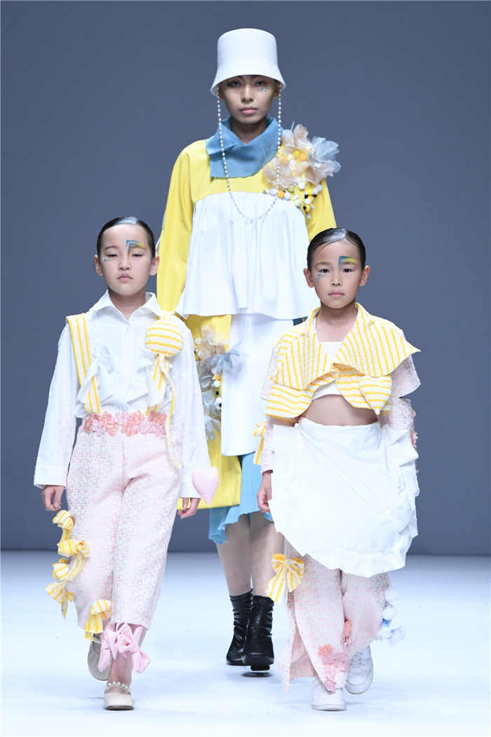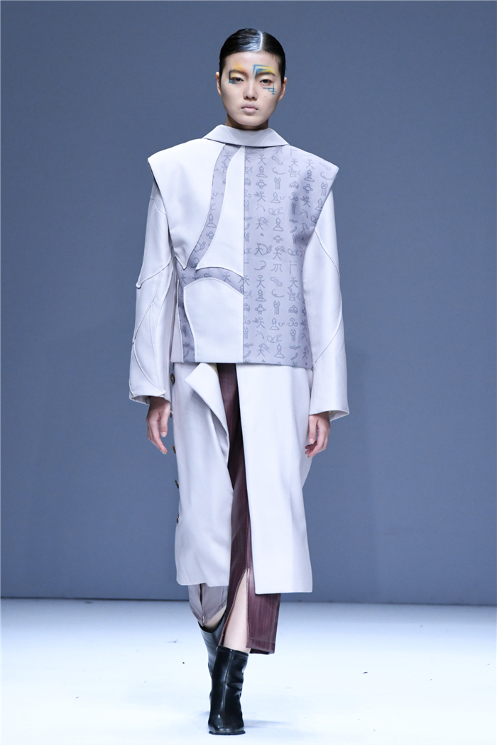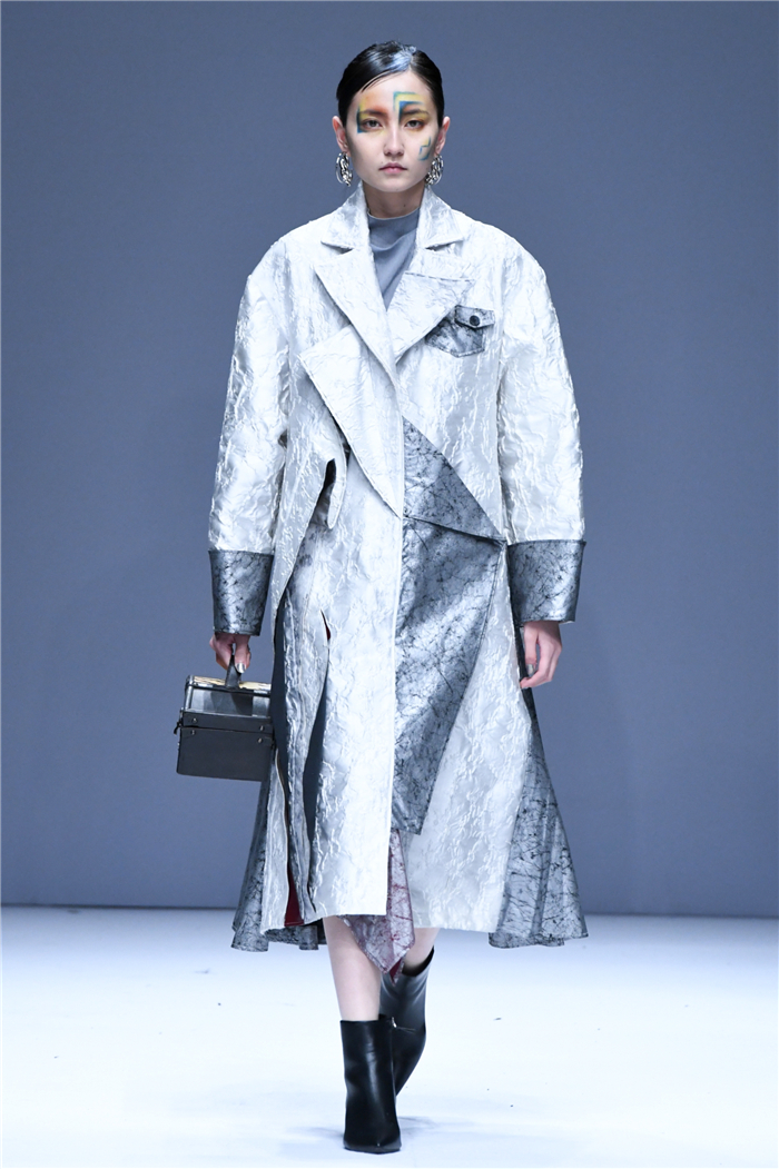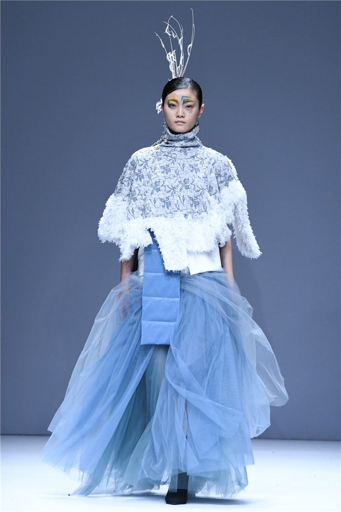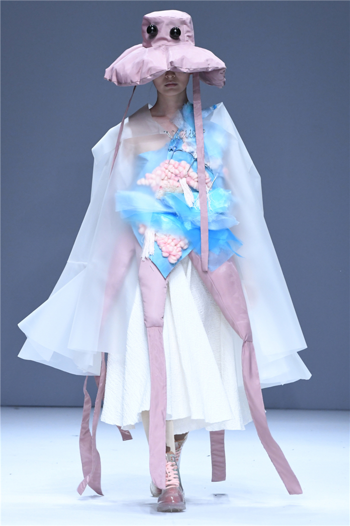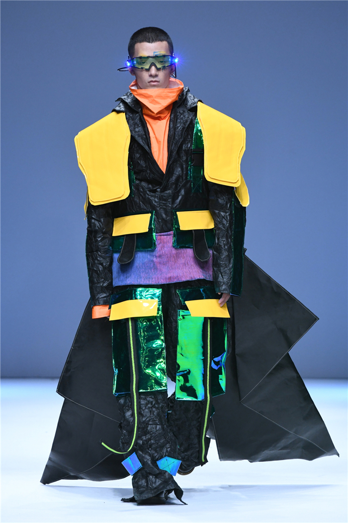 天马行空的创意,包罗万象的灵感,五彩斑斓的霓裳,在这里年轻的学生设计师们用服装语言诠释了对主题的认识,审视现在、憧憬未来,展现富有表现力和创造性的时尚元素,在造型设计和概念性装饰方面、在材料多元的搭配组合应用方面、在解构设计手法创新等诸多方面都有可喜的突破和大胆尝试。创意十足的立体裁剪、独居匠心的面料改造、精湛绝伦的缝制工艺,让整个T台绽放出无界之美。