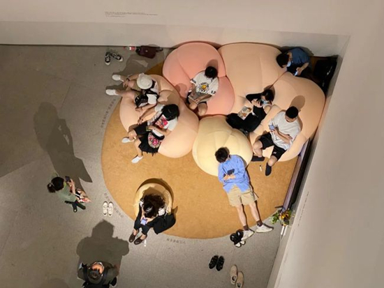 观展人在徐若昕设计的沙发上体验、休息。受访者供图