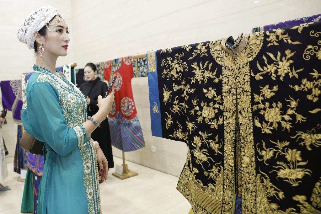 在丝路云裳传统衣韵文化论坛上,毕红一身古典美衣,向现场嘉宾分享了她从事清代宫廷服装收藏、传承京绣技艺,设计中式服装的心路历程。