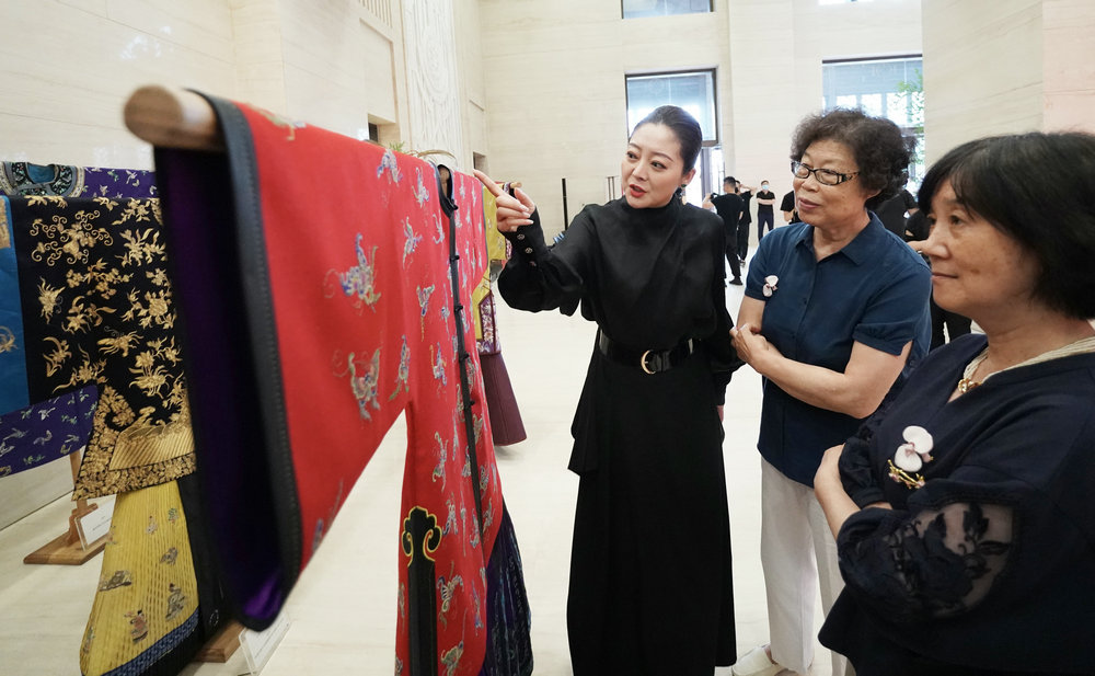 7月13日,著名古典美衣收藏家毕红在为嘉宾介绍其收藏的清代宫廷服装。