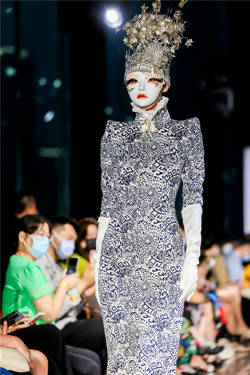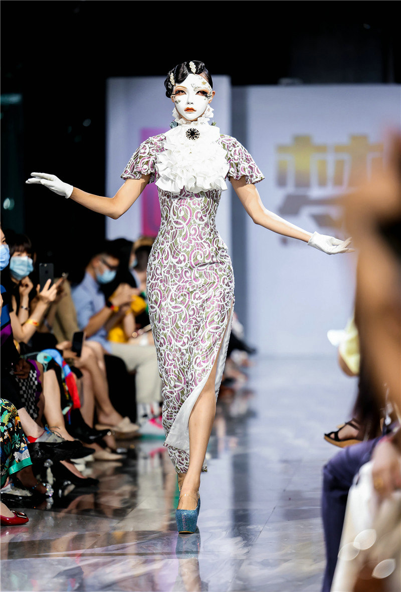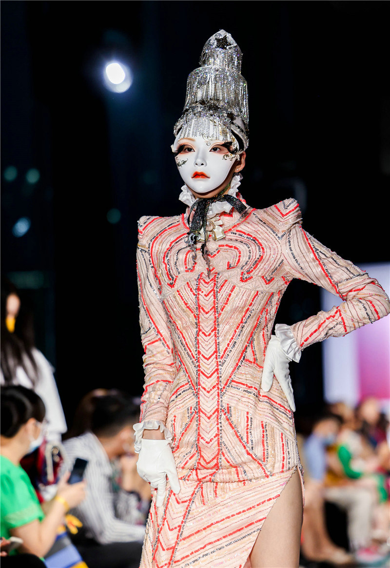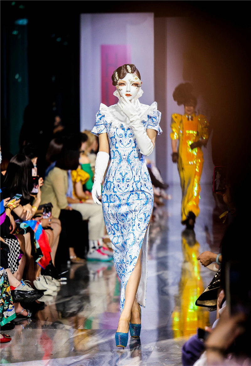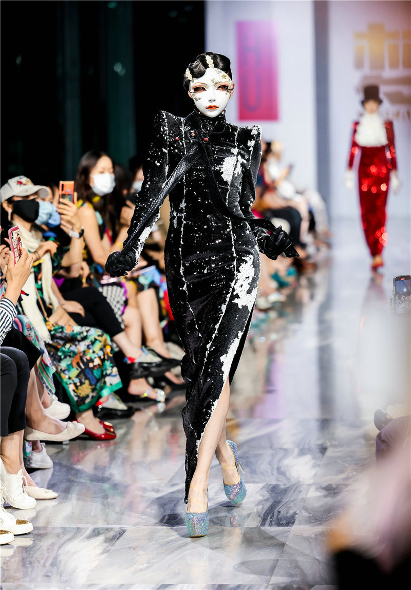 “梦”系列,大胆将东方元素拆解得支离破碎,是一种天马行空地重构。胡社光一直试图将新奇、矛盾、魔幻、能量、情绪等变成视觉语言,将中国文化、东方艺术形式加入到东方传统旗袍中,融合了民族语言、国际审美,让中国时装印象不再局限于单薄的龙凤、祥云等元素,变成一种符合当下生活方式的审美,甚至是一股可以影响全世界的时尚风潮,这是设计师胡社光的时装梦想。