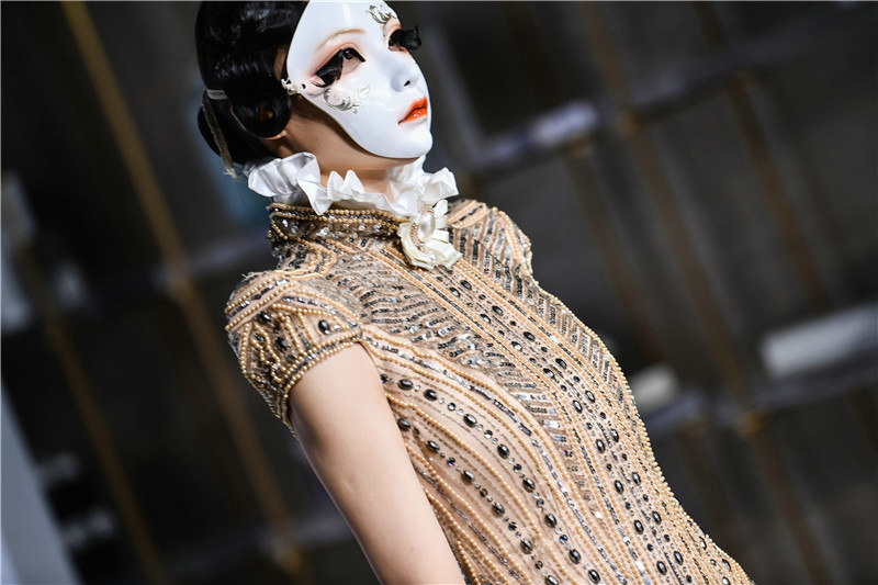 当被问到为什么这次模特仍然是头戴面具进行T台表演时,胡社光说:“当模特带上面具,他们更多的是向内寻求自我,没有了面部表情,肢体语言就成了关键。当模特更多拿出心灵的情感去表达的时候,衣服有生命力了。我希望穿着者可以钻进作品中,寻找更深刻的意义。”