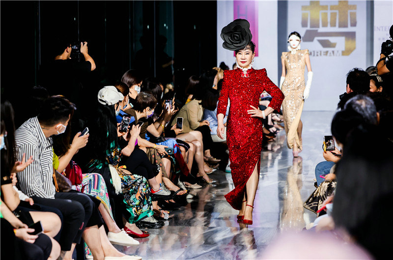 同时,设计师在自我表达、创意设计过程中,用时装表演、高级定制这种方式逐渐建立起与胡社光“时尚娘子军”这个群体的一种沟通方式。当这部分女性群体亲临时装show的后台,完成突破性的妆容、穿上“恨天高”、驾驭精湛配饰、魔幻感道具,最终提气勇气、决心以普通人的身份,与专业的超模共同走上T台,她们找到了人生的B面,获得了自己梦想绽放的荣耀时刻。