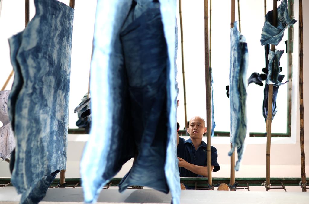 8月10日,在贵州省黔东南苗族侗族自治州丹寨县宁航蜡染工坊,成昊(右)与蜡染画娘在交流新设计蜡染时装的缝制效果。 今年42岁的哈尔滨人成昊一直从事时装设计工作,曾在国际设计大赛上获得过金奖。一次偶然的机会,成昊首次近距离接触到苗族蜡染这项国家级非遗技艺,萌生了将现代时装设计与传统蜡染纹样相结合制作时装的想法。2017年,成昊来到苗族蜡染主要传承地贵州省丹寨县,就此沉浸在了蜡染的世界,蜡染工坊的画娘们都戏称他为“蜡染工坊小裁缝”。苗族传统蜡染精美的图纹给了他设计上的灵感,几年中,成昊设计的蜡染时装不仅在丹寨传统“蜡染圈”产生了不小的影响,还登上了北京国际时装周、伦敦时装周等国内外十几个时尚秀场。 成昊说,蜡染让他的设计更有了灵魂,接下来,他要带着自己设计的蜡染时装走向更大的“秀台”,让深藏在贵州大山里的瑰宝在国际上闪耀光彩。 新华社发(黄晓海 摄)pagebreak