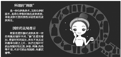 较高浓度的酸对皮肤具有一定的刺激和破坏作用。“酸”浓度的增加、停留时间的延长,发生不良反应的概率也随之上升。治疗过程中可能出现暂时性红斑、肿胀、刺痛、灼热等不适,术后可能出现结痂、色素沉着等。记者 张鑫