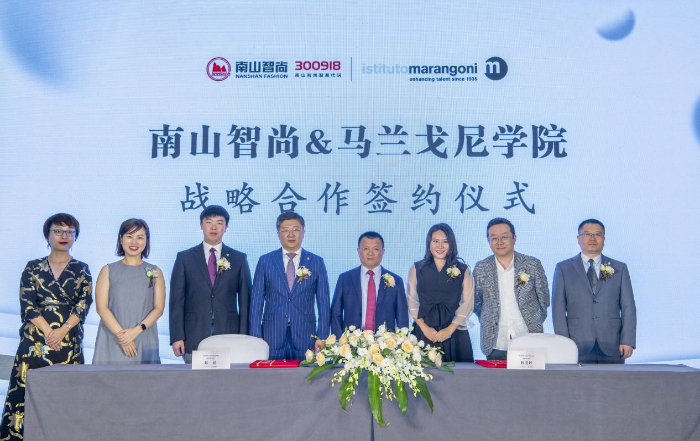 发布会除了对南山智尚杯•中国正装设计大赛的赛事章程进行介绍外,还举行了南山智尚与马兰戈尼学院上海校区战略合作签约仪式。马兰戈尼学院上海校区校长程莹婷表示,马兰戈尼非常荣幸能够和南山智尚合作,共同致力于培养具有国际视野的中国设计人才,从而走向世界。除了提供此次大赛的一些奖学金,未来马兰戈尼和南山智尚也将在流行趋势的研究和联合研发等领域展开深入的合作,为中国的时尚行业发展培养更多适合国情的、具有国际化视野的、高质量的行业人才。双方本着“产教融合、优势互补”的原则,将以校企合作的方式激发学生的创造力与设计力,为正装设计赋能,致力于推动正装行业专业化进程走深、走宽、走实,为构筑高质量的正装设计蓝海添砖。
